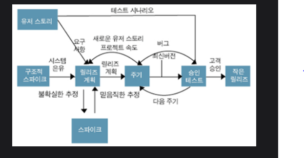 XP는 수시로 발생하는 고객의 요구사항에 유연하게 대응하기 위해 고객의 참여와 개발 과정의 반복을 극대화하여 개발 생산성을 향상 시키는 방법.