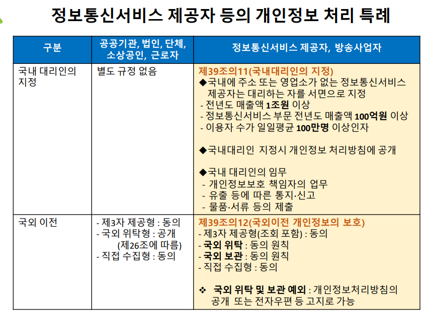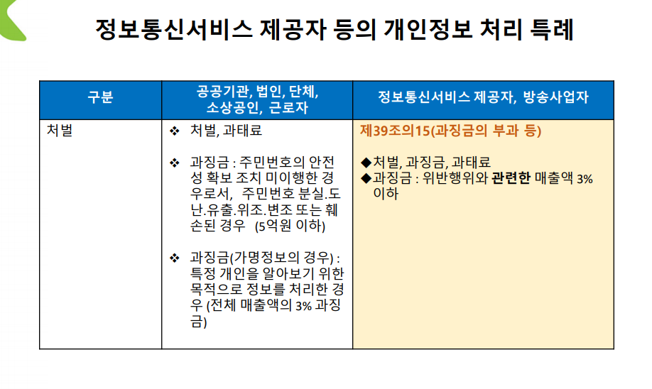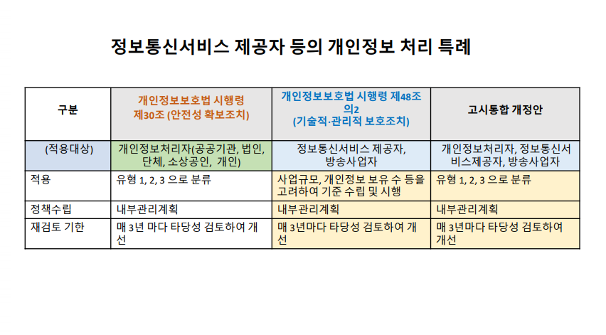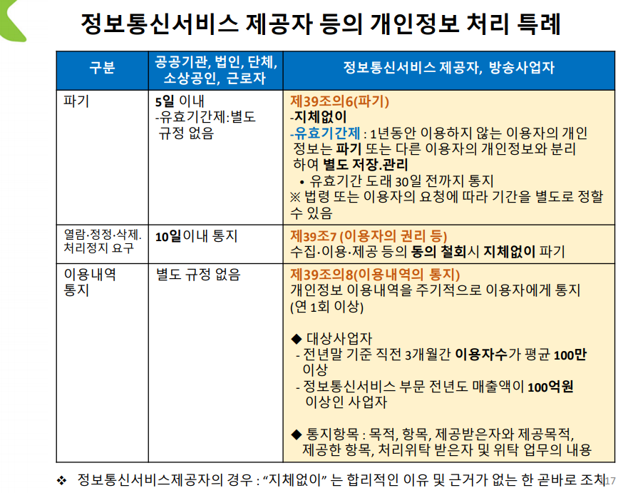 3번의 빨간색 괄호는 특례다. 정보통신서비스제공자는 더 엄격하게 관리된다.