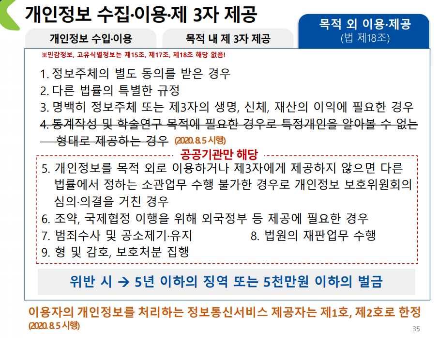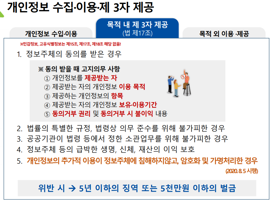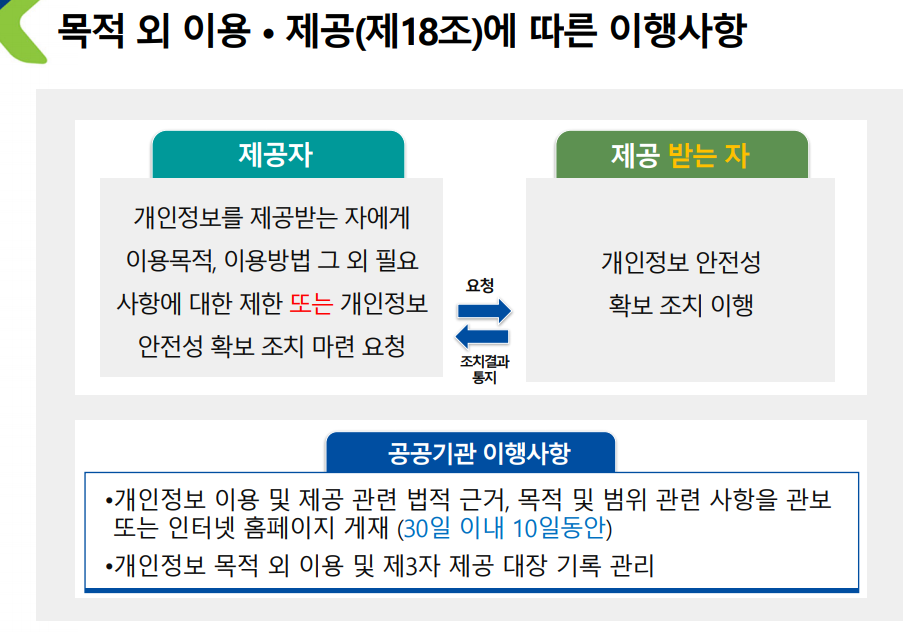 EX) 회원가입을 위해 개인정보를 받았는데 마케팅용으로 개인 정보 사용시 목적 외 이용을 한 것.