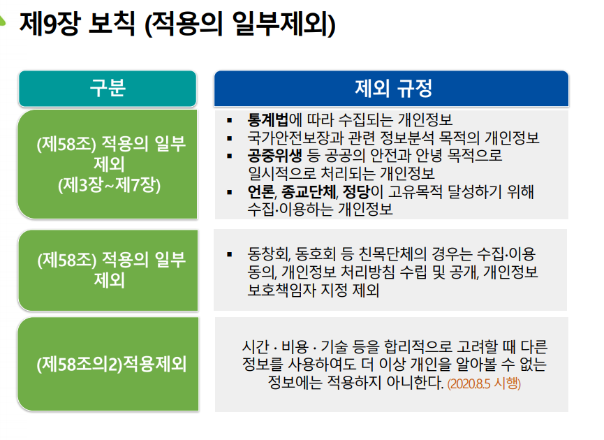 제58조의2가 익명정보에 해당하는 제외 규정이다.