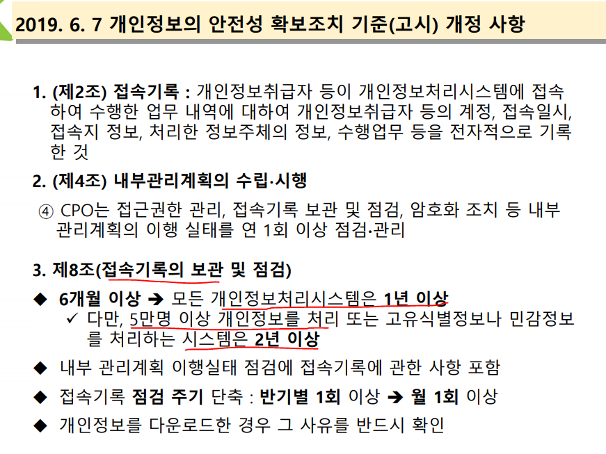 관리적/기술적으로 보호조치가 이뤄지지 않으면 법적조치가 강해진다.(벌금이 상승)