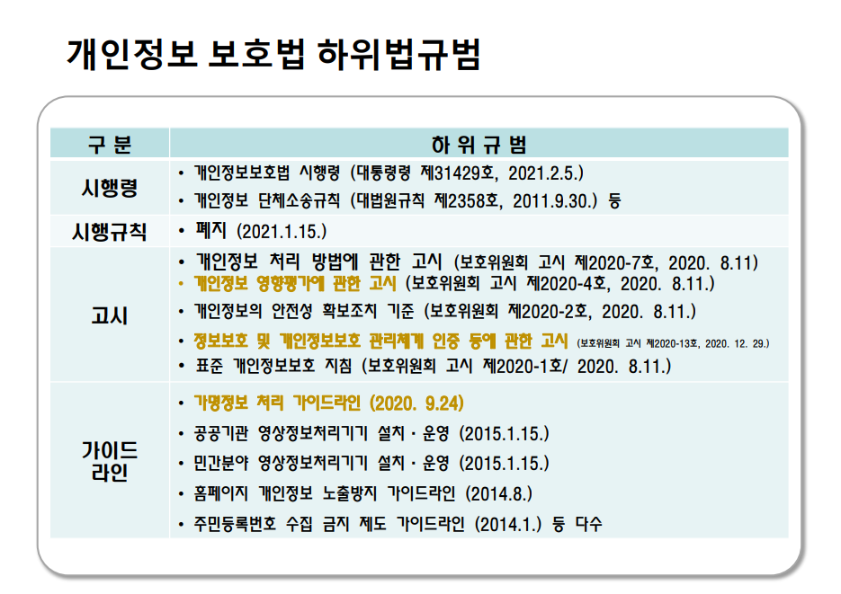개인정보 보호법은 고시까지 전부 알아야 한다.