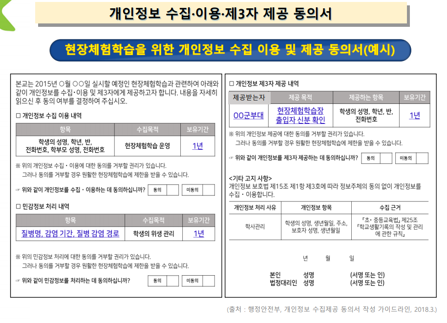 동의가 불필요 한 것은 목적/항목/기간/근거 등을 잘 적어서 정보 제공자에게 알려줘라는 뜻.